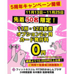 11月13日~25日限定 11月・12月月会費無料キャンペーン開催!!